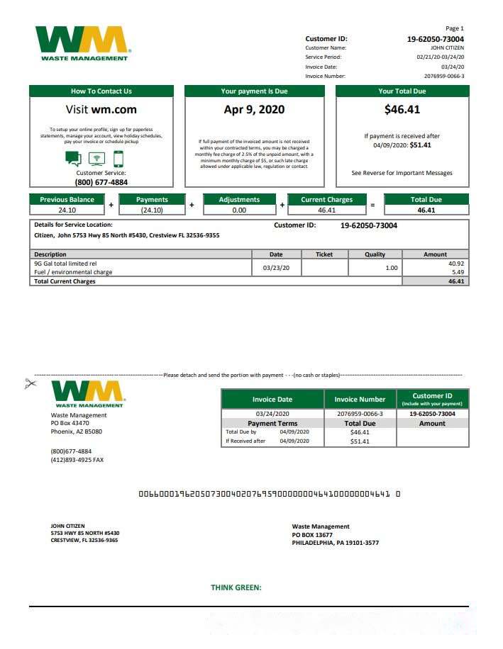 USA Waste Management bank statement template in Word and PDF format, good for address prove download template file