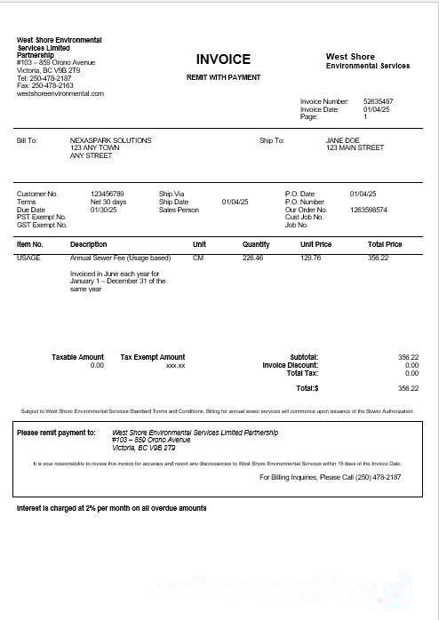 USA WEST SHORE business utility bill Word and PDF template download template file