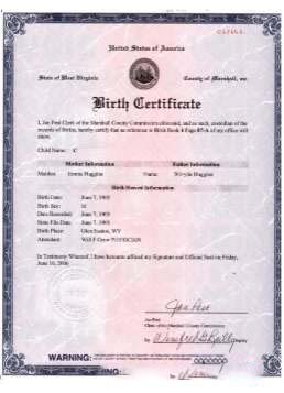USA West Virginia birth certificate version 2 download template file