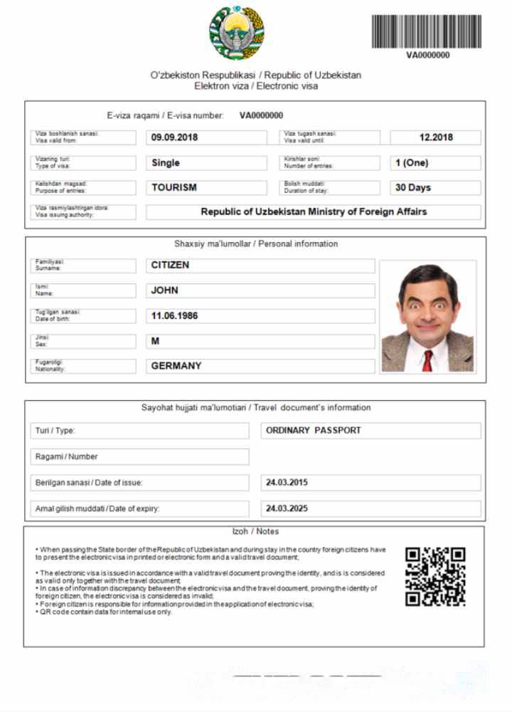 Uzbekistan e visa in Word and PDF template download template file