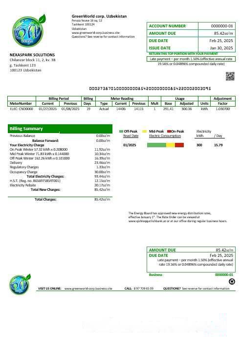 Uzbekistan GreenWorld business utility bill template in Word and PDF format, fully editable download template file