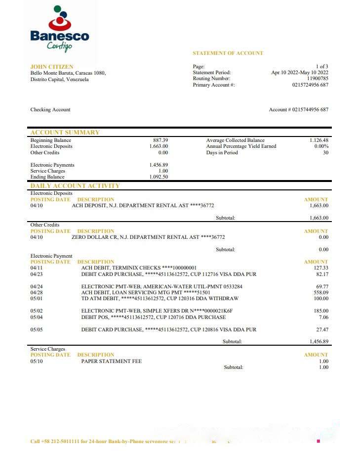 Venezuela Banesco bank statement download template file