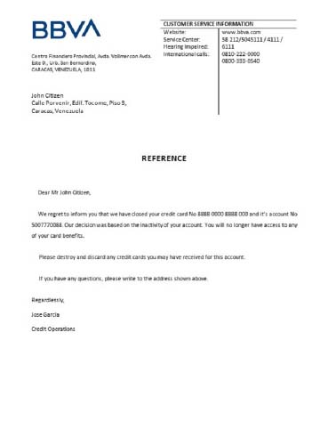 Venezuela BBVA bank closure reference download template file