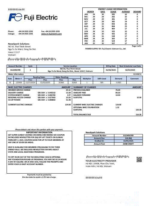 Vietnam Fuji Electric Vietnam Co. business utility bill template in Word formats download template file
