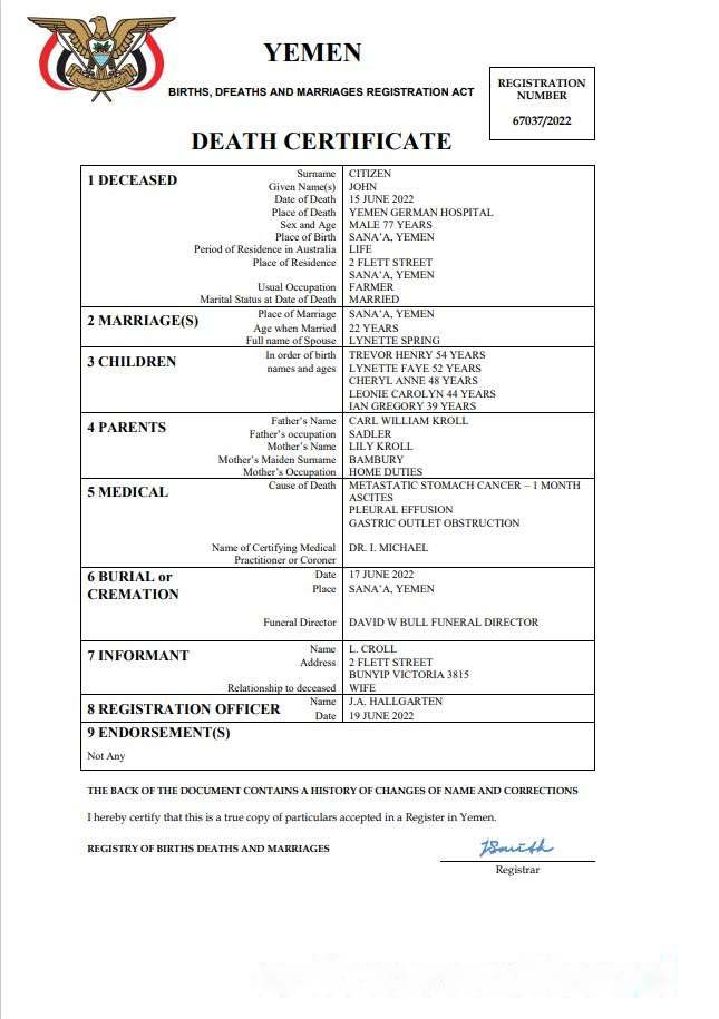 Be the first to review “Yemen death certificate Word and PDF template download template file”