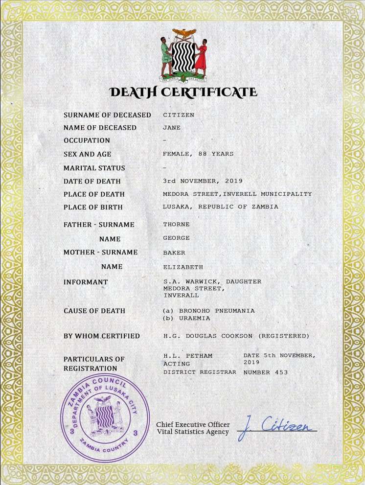 Be the first to review “Zambia vital record death certificate PSD template download template file”