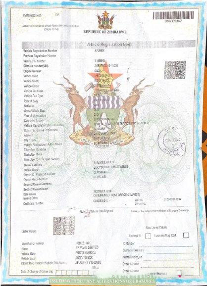Zimbabwe vehicle registration certificate download template file